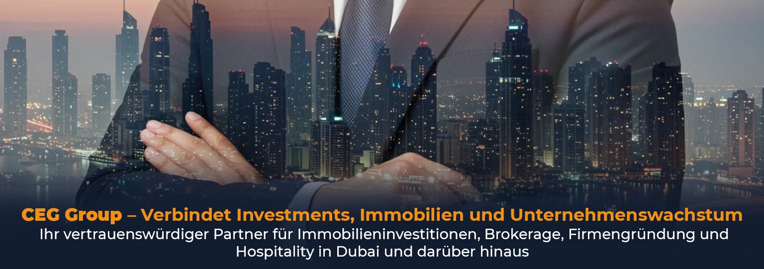Wir sind eine authentifizierte Unternehmensgruppe mit Sitz in Dubai und vereinen vier spezialisierte Unternehmen – CEG Broker, CEG Setup, CEG Stake und CEG Booking. Wir bieten vertrauenswürdige Lösungen in den Bereichen Immobilien, Unternehmensgründung, anteilige Immobilieninvestitionen und Hospitality. Basierend auf Expertise, Innovation und einem Engagement für Wachstum verbindet die CEG Group Investoren, Unternehmer und Immobilieneigentümer mit sicheren, transparenten und langfristigen Chancen.